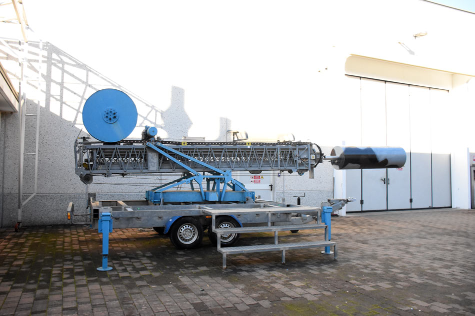Sul fianco del rimorchio c'è un telaio estraibile a varie larghezze regolabili che consente di poter fissare degli apparati e una scala a gradini consente all'operatore di raggiungere il livello delle apparecchiature.