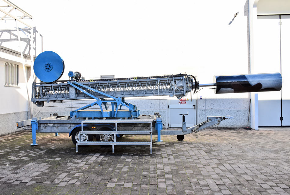 Questa macchina nasce da una lunghissima esperienza nel settore delle telecomunicazioni ed è stata studiata nei minimi dettagli per soddisfare tutte le esigenze richieste da una installazione rapida, il suo montaggio in campo può essere eseguito da solo un addetto e nel rispetto della sicurezza totale anche in situazioni di emergenza.